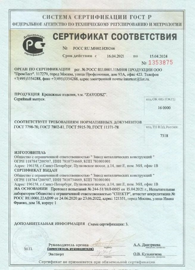 Сертификация крепежных изделий